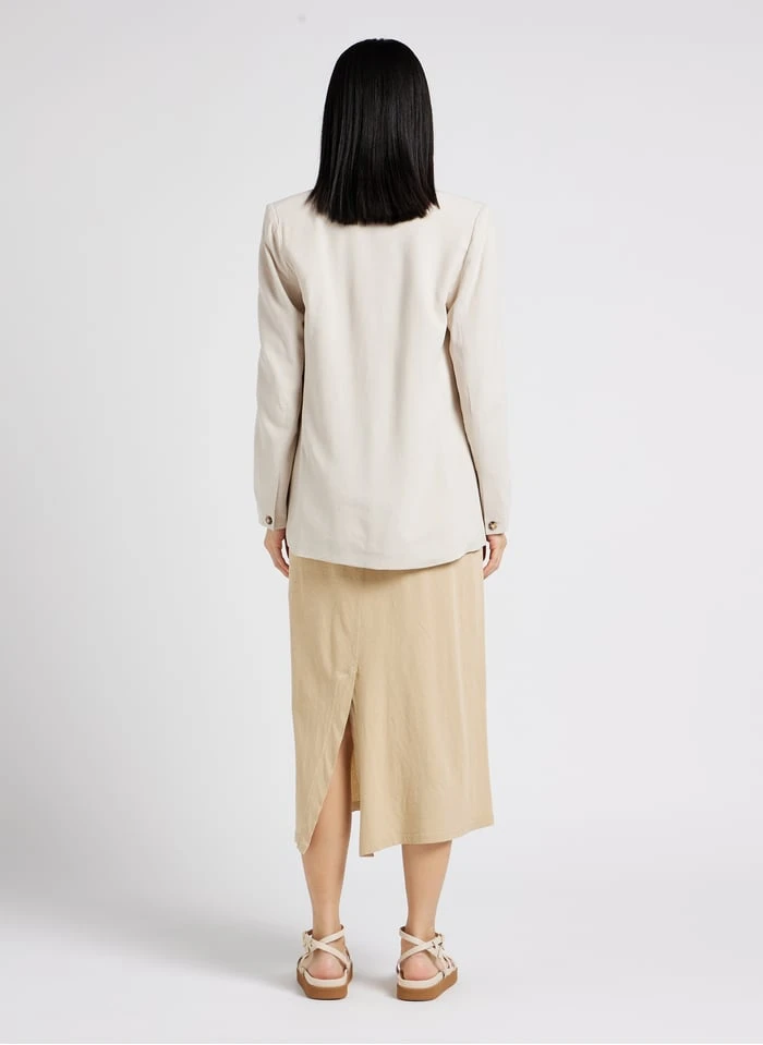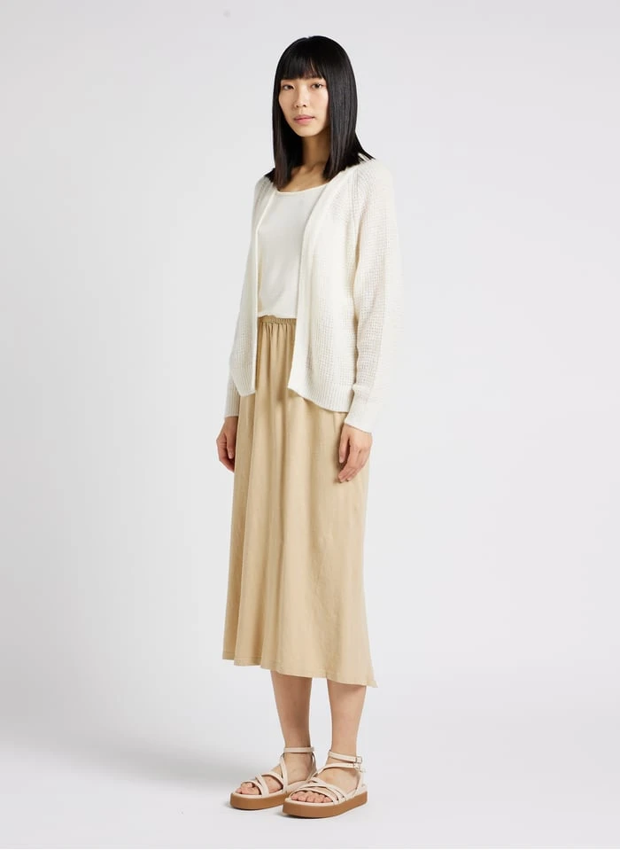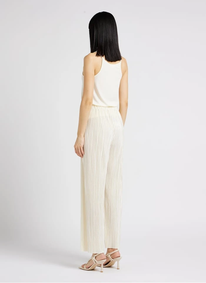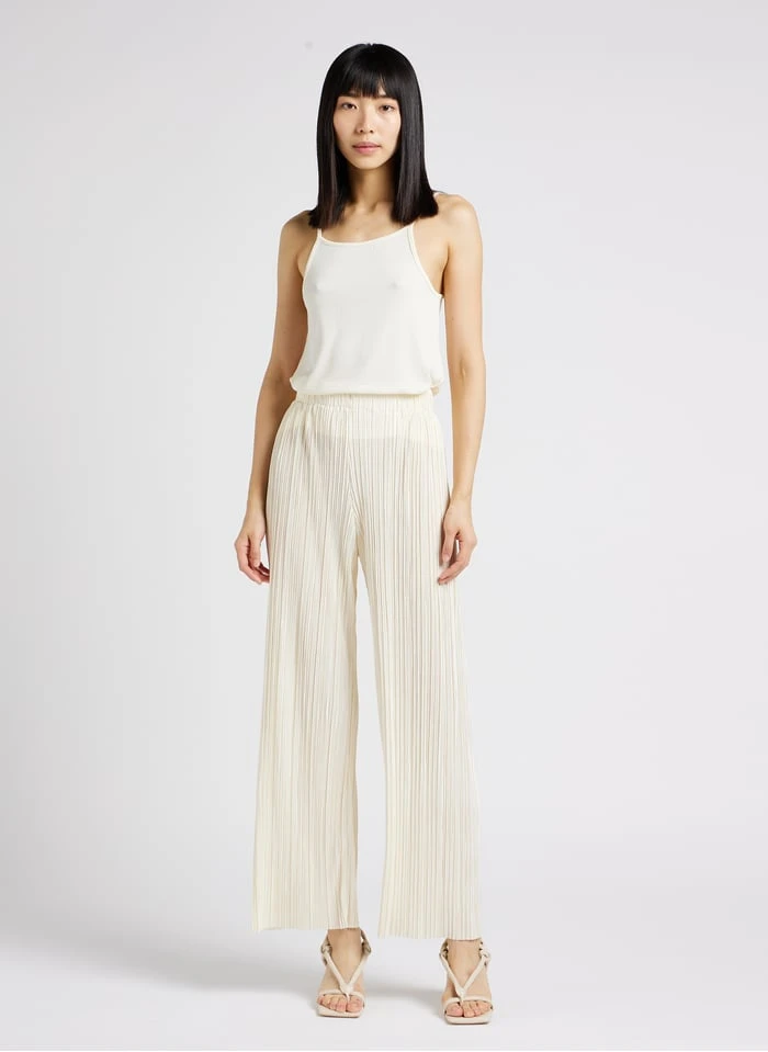 This model is shown wearing Pleated palazzo pants by GRACE ET MILA, Heeled smooth leather sandals by ALOHAS