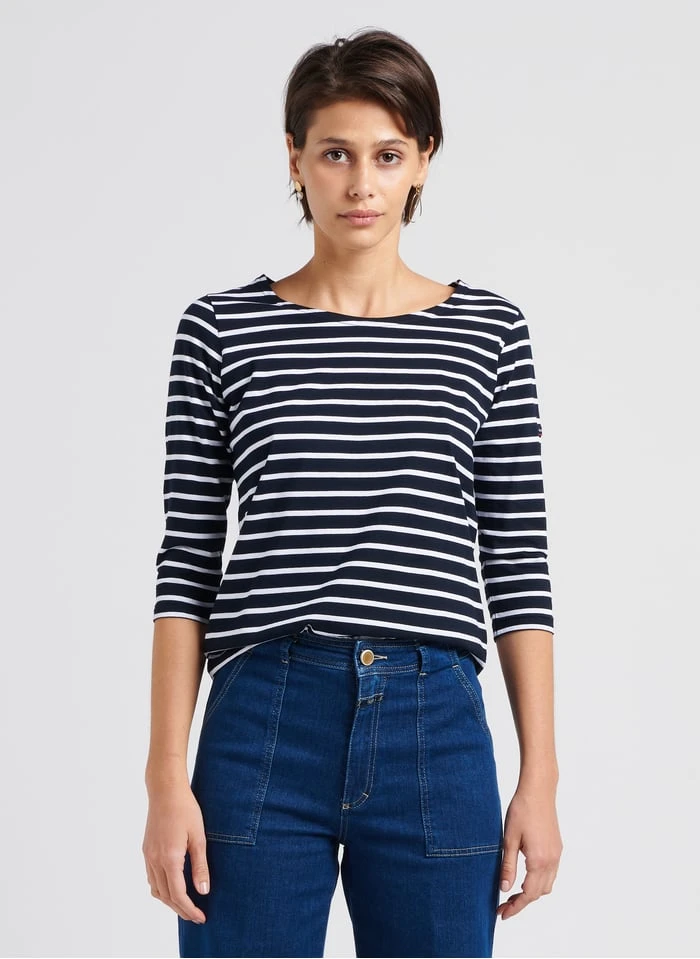 Round-neck light jersey Breton top by Armor Lux for Women.