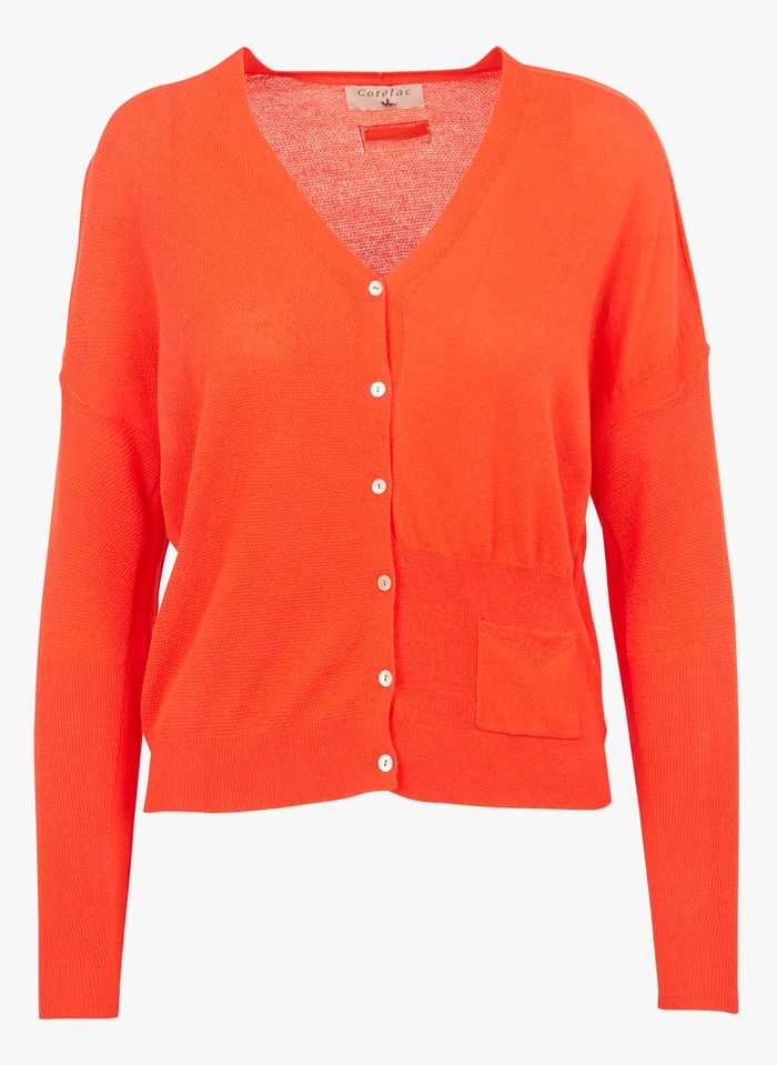 BERENICE GAMMA – Orange V-neck Cardigan With Openwork Embroidery
