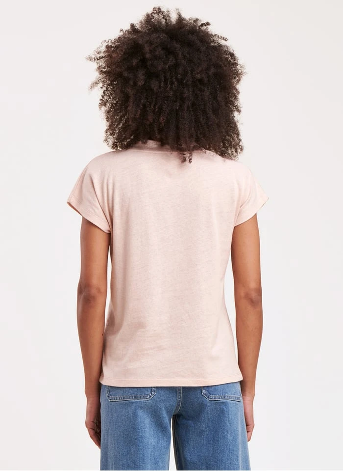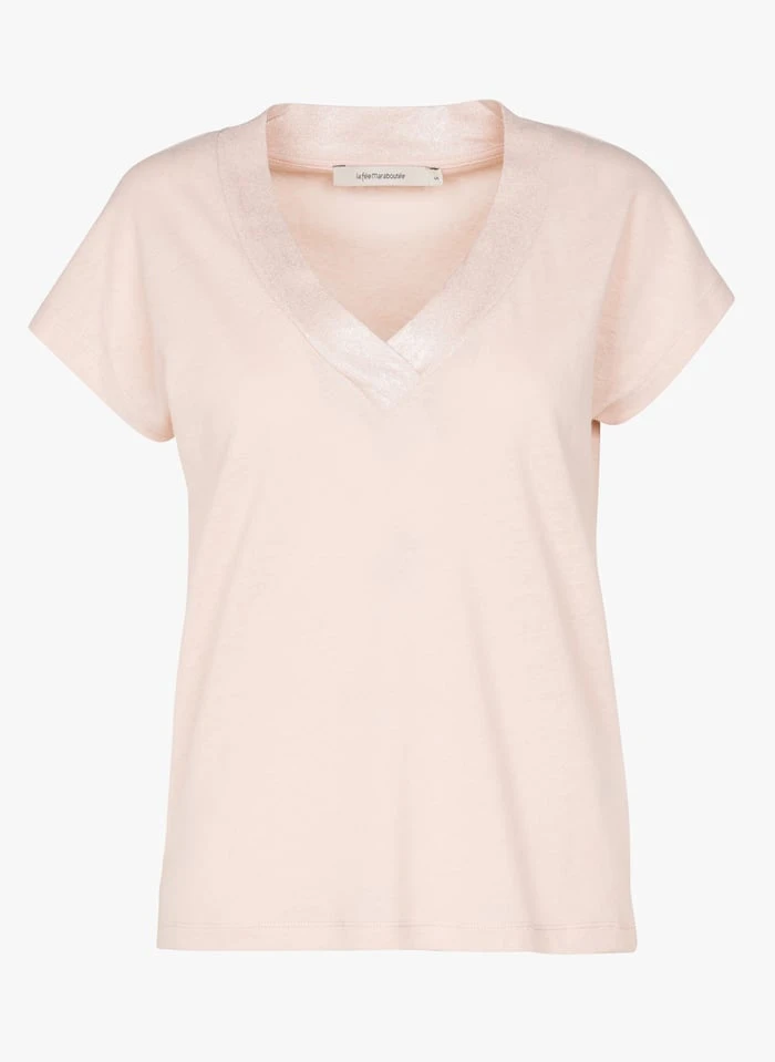 Metallic linen V-neck T-shirt by La Fée Maraboutée for Women.