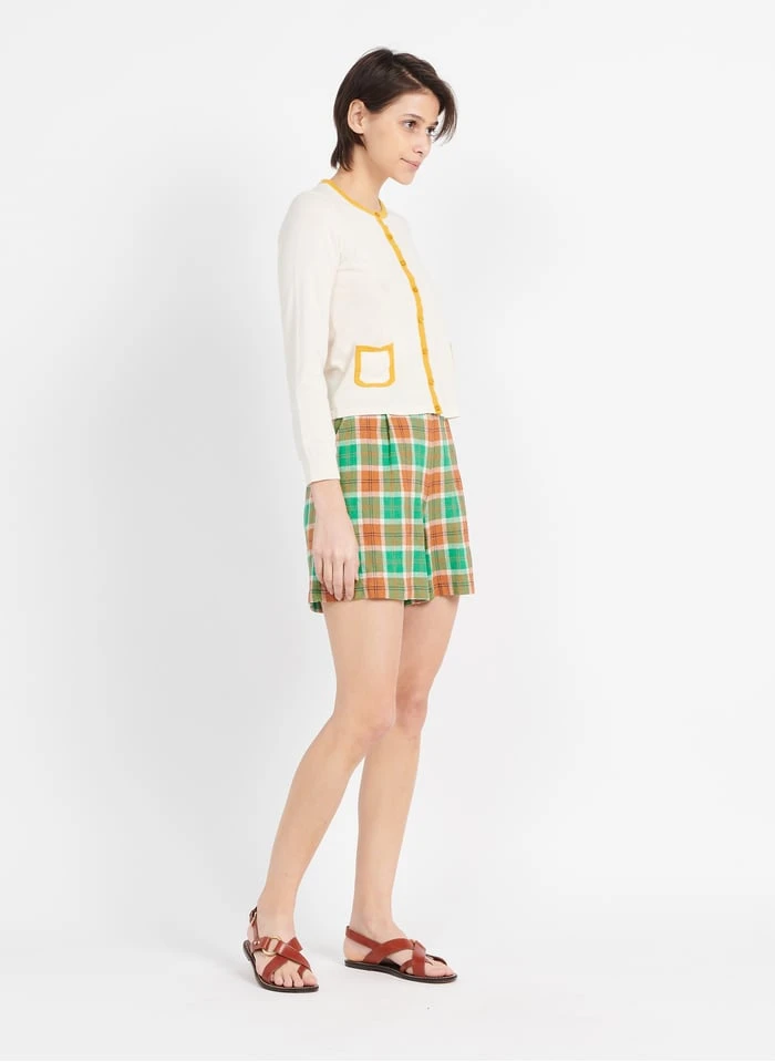 This model is shown wearing Checked Bermuda shorts by NICE THINGS