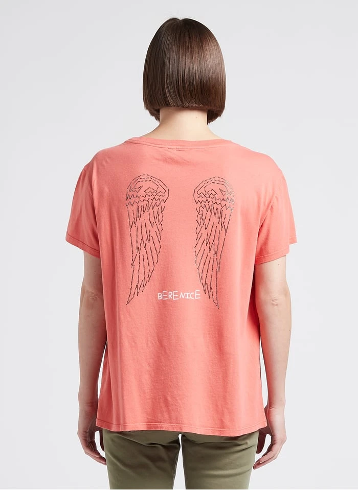 Round-neck cotton T-shirt with diamanté wings by Berenice for Women.