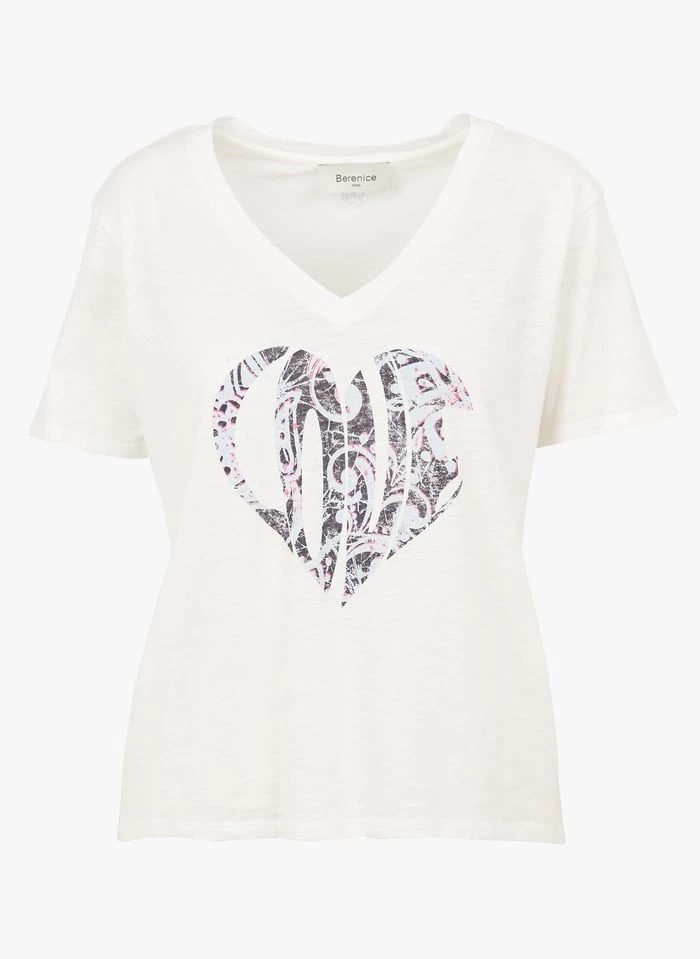 V-neck cotton T-shirt with screen print by Berenice for Women.