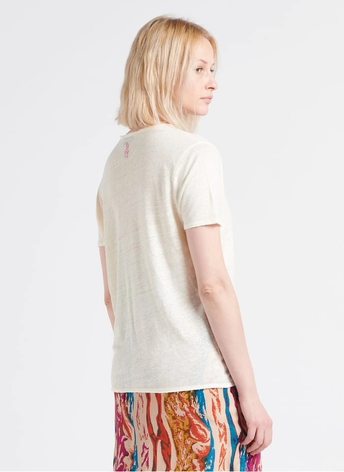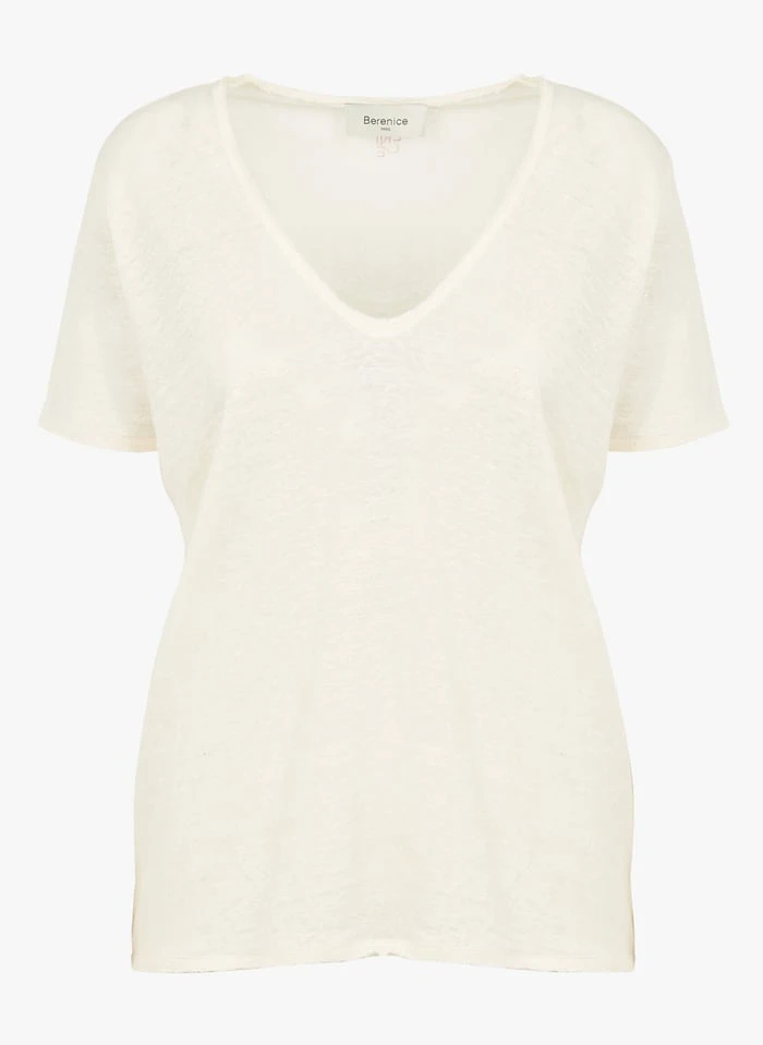 Straight-cut V-neck linen T-shirt by Berenice for Women.