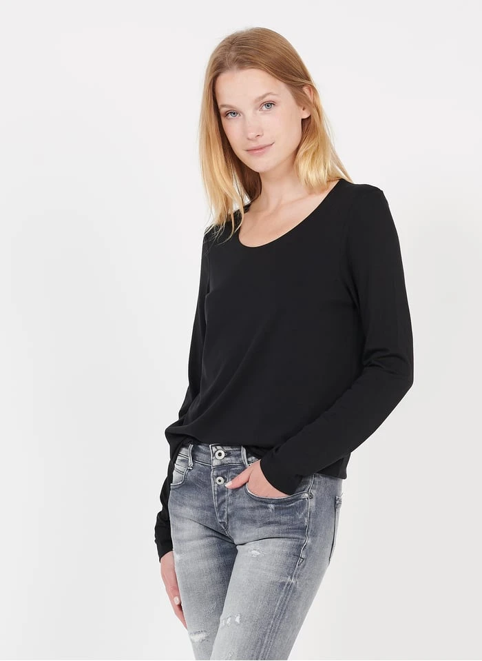 Round-neck lyocell and cotton T-shirt by La Fée Maraboutée for Women.
