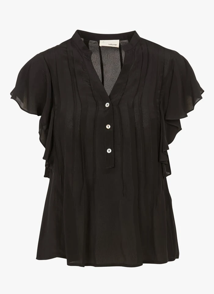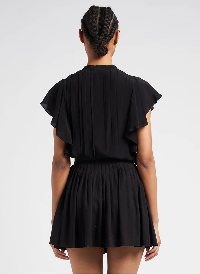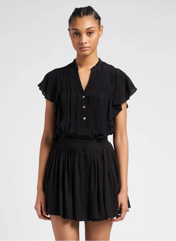 This model is shown wearing Pleated buttoned skirt by THE KORNER