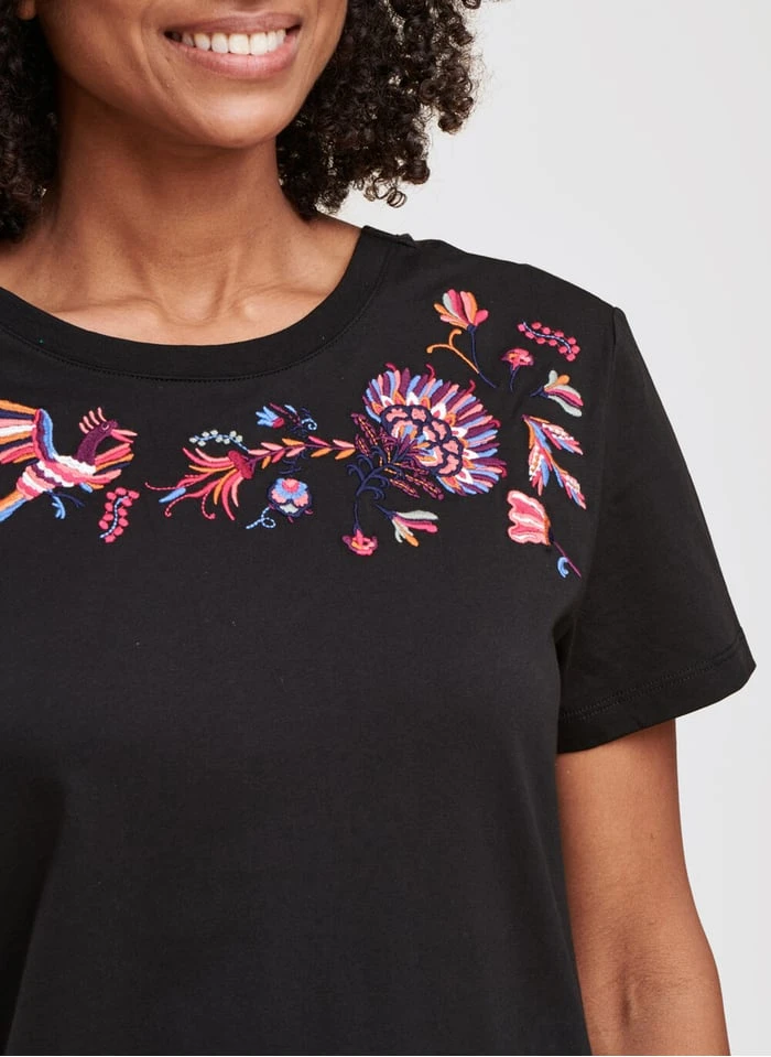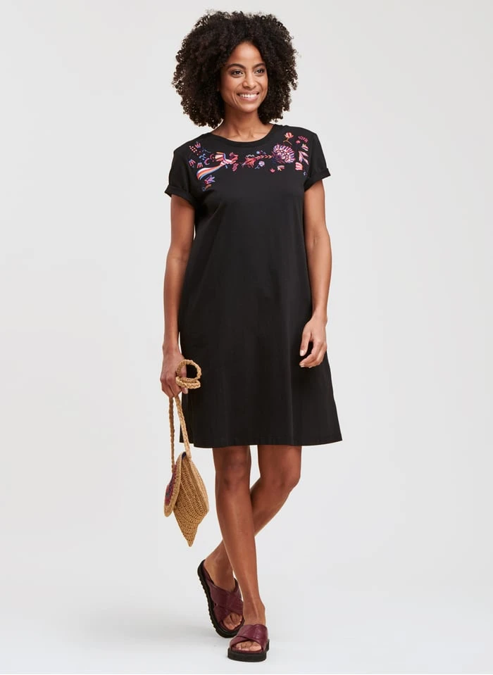 Short embroidered organic cotton dress with round neck by La Fée Maraboutée for Women.