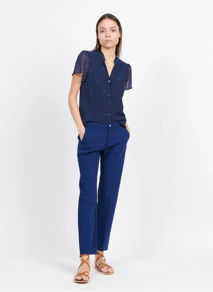 This model is shown wearing Zipped straight-leg pants by I CODE