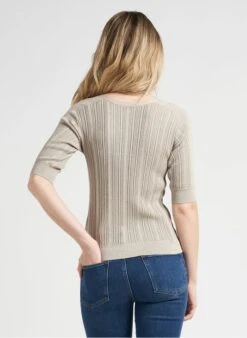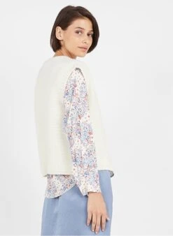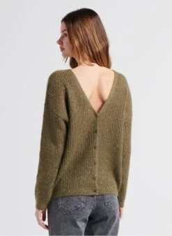 MAISON 123 MADDY – Brown Sequined Mixed-knit V-neck Cardigan