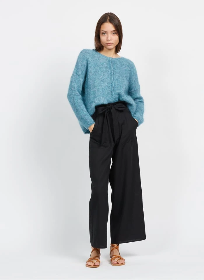 Round-neck mohair-blend cardigan by Des Petits Hauts for Women.