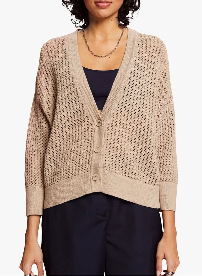 V-neck cotton-blend cardigan by Esprit for Women.