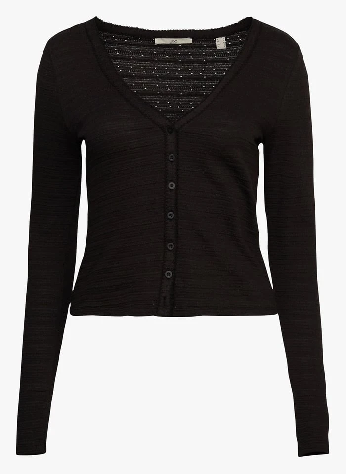 Straight-cut cotton-blend V-neck cardigan by Esprit for Women.