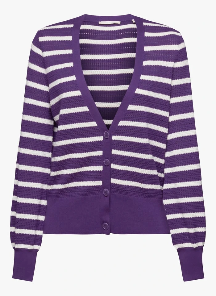 Striped cotton knit cardigan by Esprit for Women.