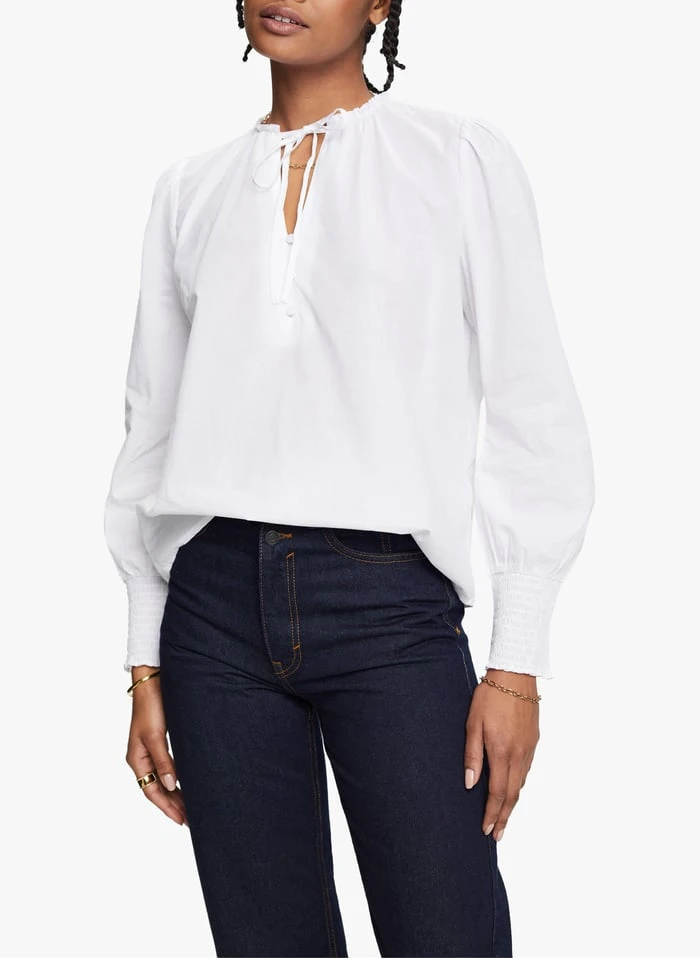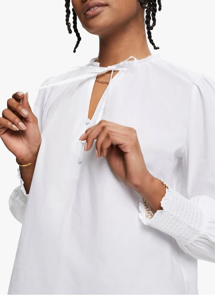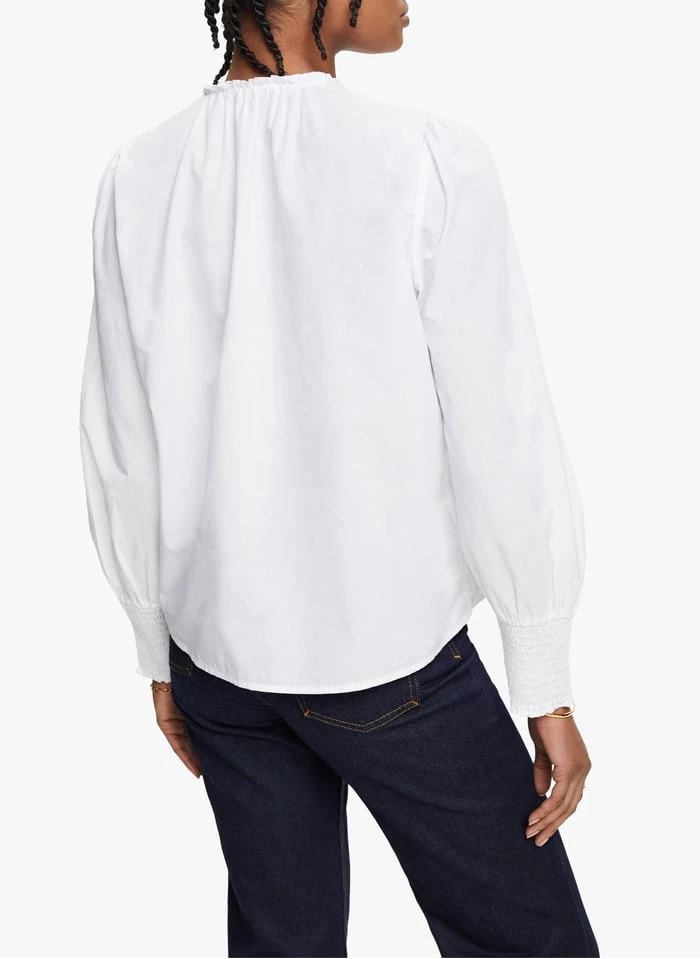 STELLA FOREST KATE – White Round-neck Cotton Top With Openwork Embroidery
