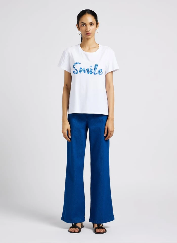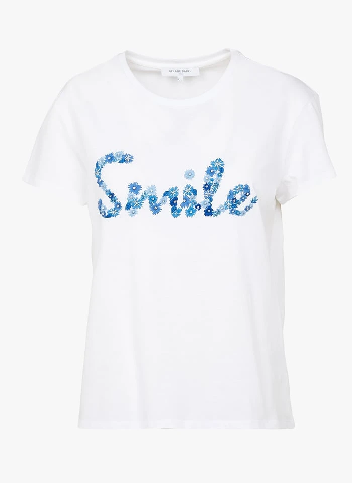 Embroidered cotton T-shirt with rhinestones and flowers by Gerard Darel for Women.