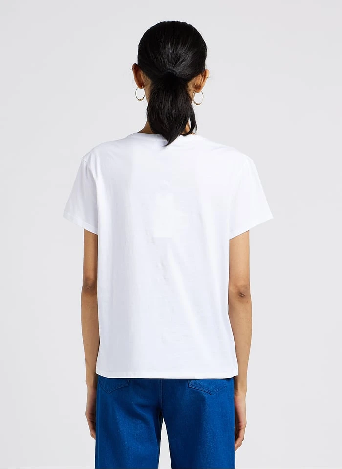 Maison Labiche CHATEAU OUT OF OFFICE – White Straight V-neck Linen And Cotton Blend T-shirt