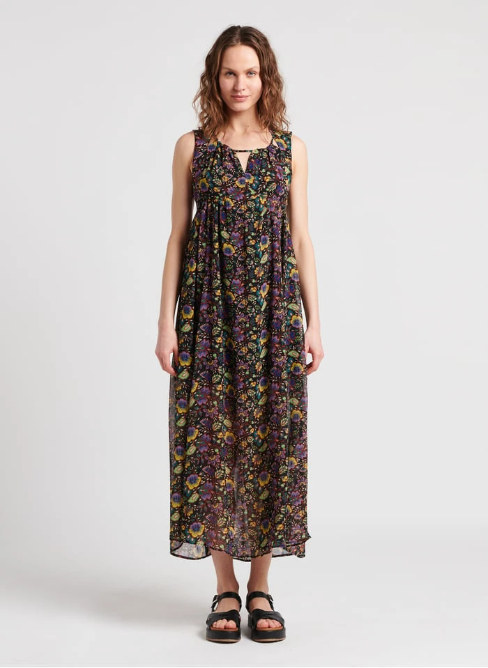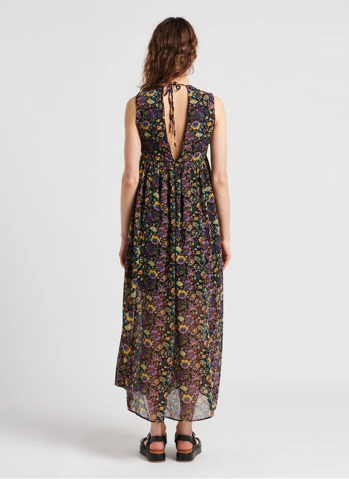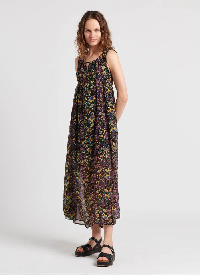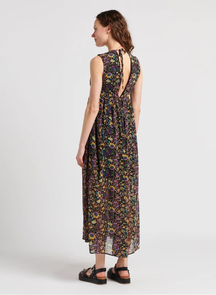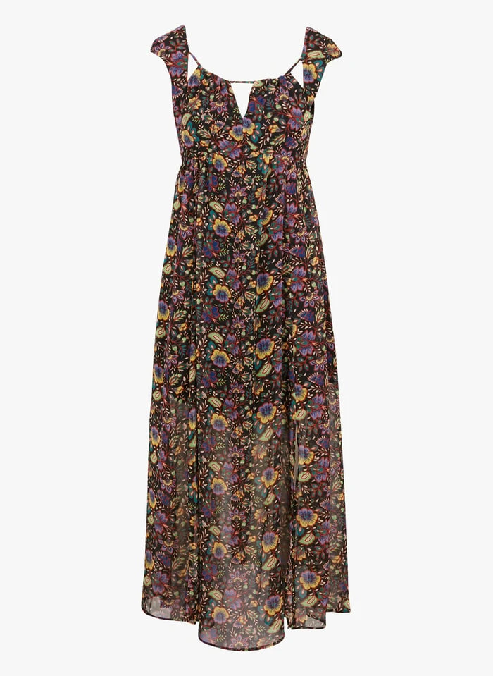 Long floral print V-neck dress by IKKS for Women.