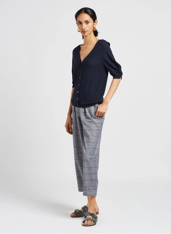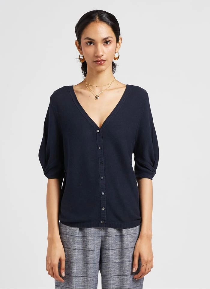 Mixed-knit V-neck cardigan by IKKS for Women.