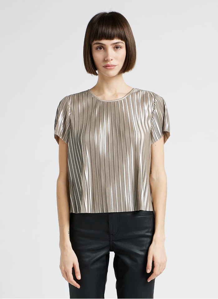 Round-neck pleated crop top by IKKS for Women.
