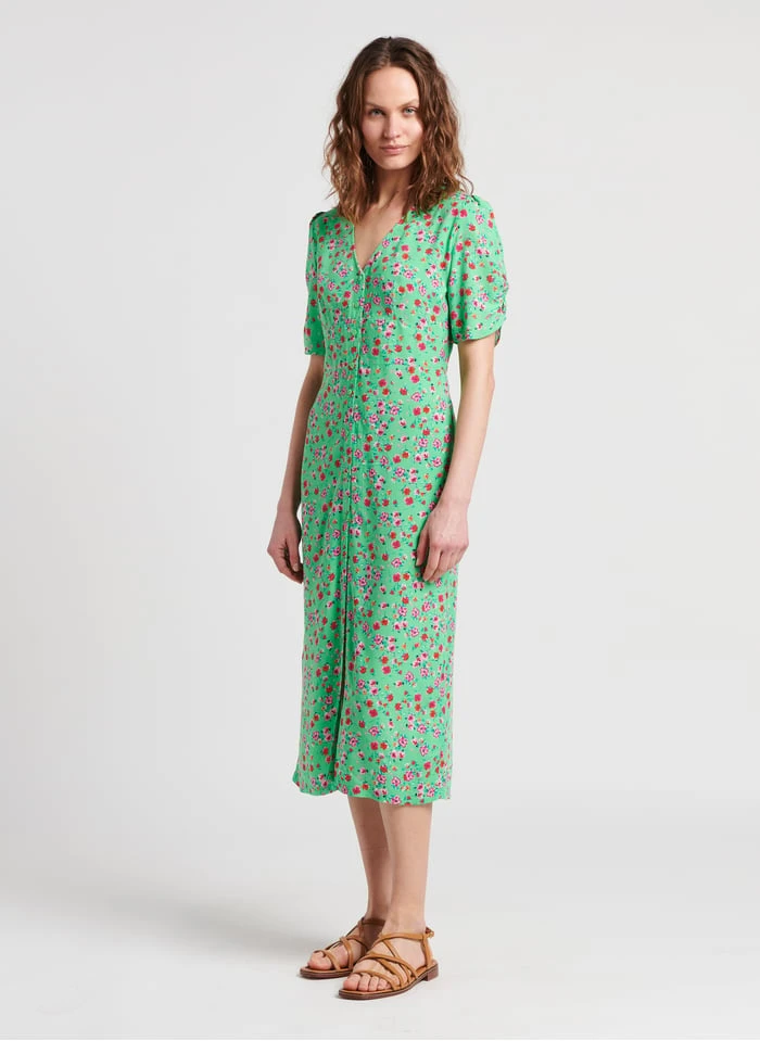 Straight floral print V-neck midi dress by Grace et Mila for Women.