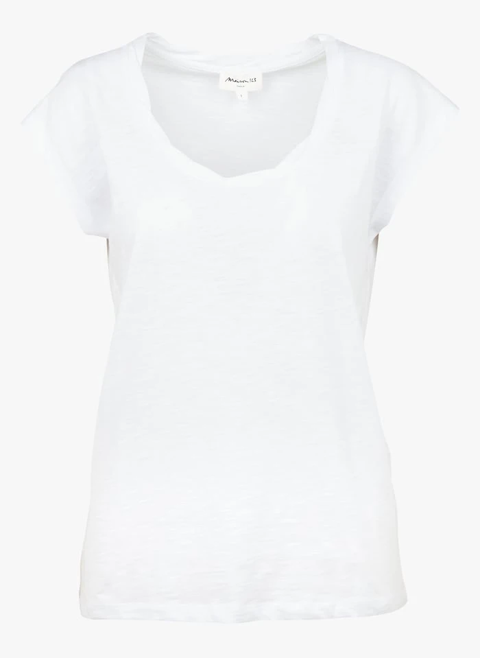 Maison Labiche CHATEAU OUT OF OFFICE – White Straight V-neck Linen And Cotton Blend T-shirt