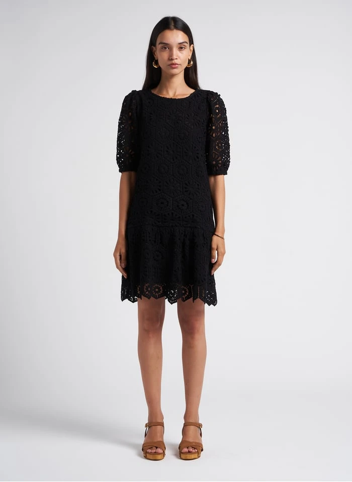 Short straight cotton-blend crochet dress by Maison 123 for Women.