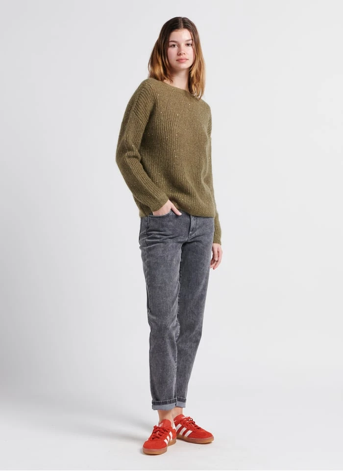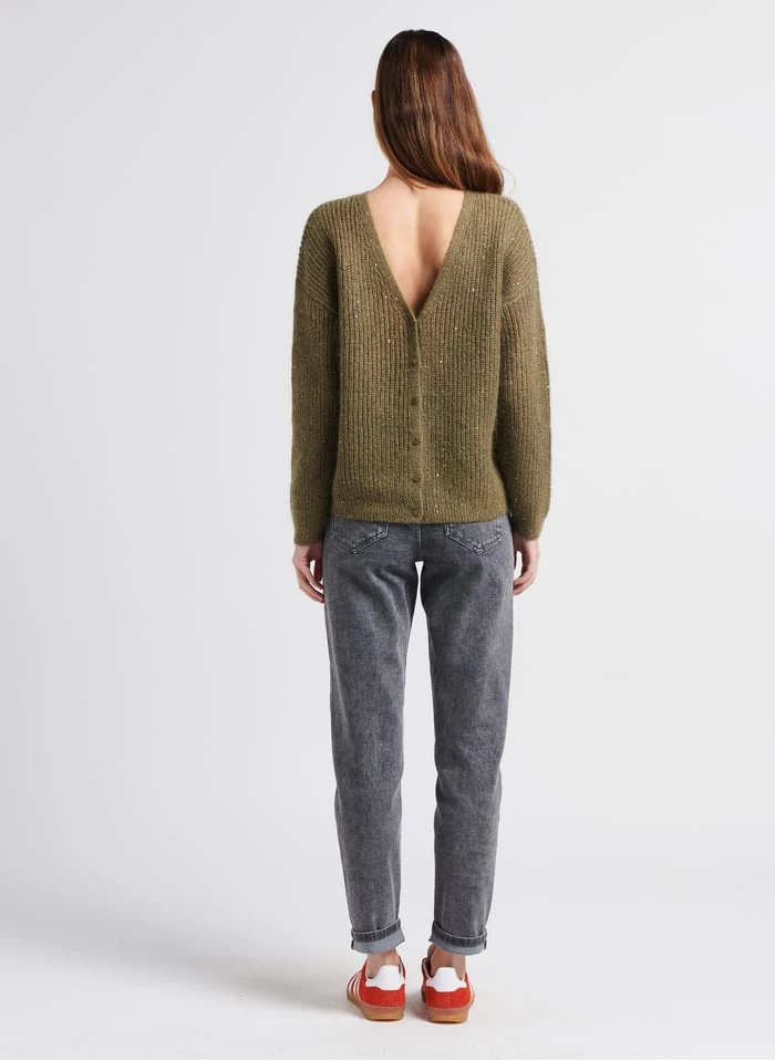 Sequined mixed-knit V-neck cardigan by Maison 123 for Women.