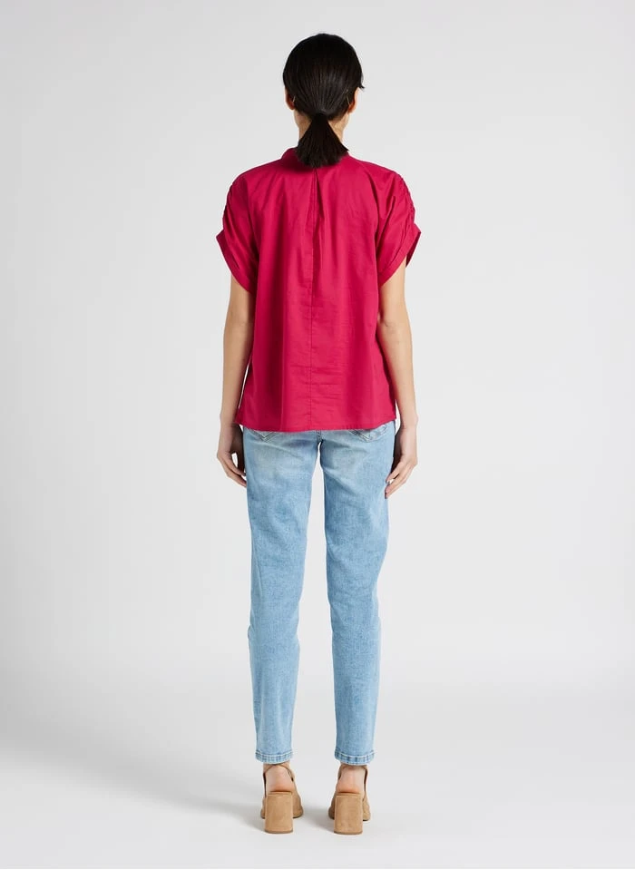 This model is shown wearing Faded slim-fit jeans by MAISON 123, Heeled leather sandals by JONAK