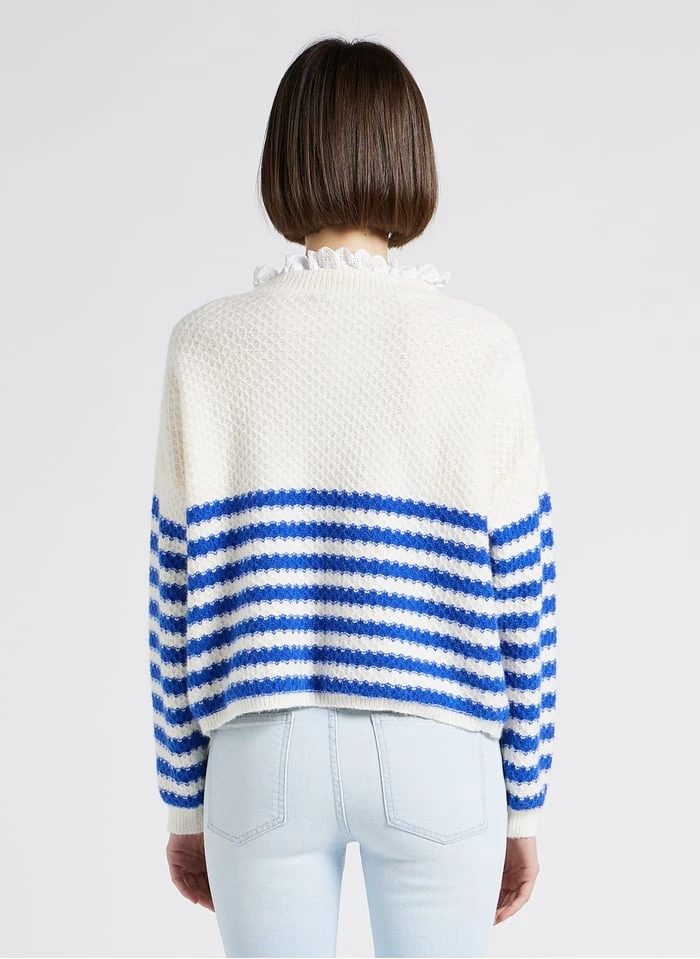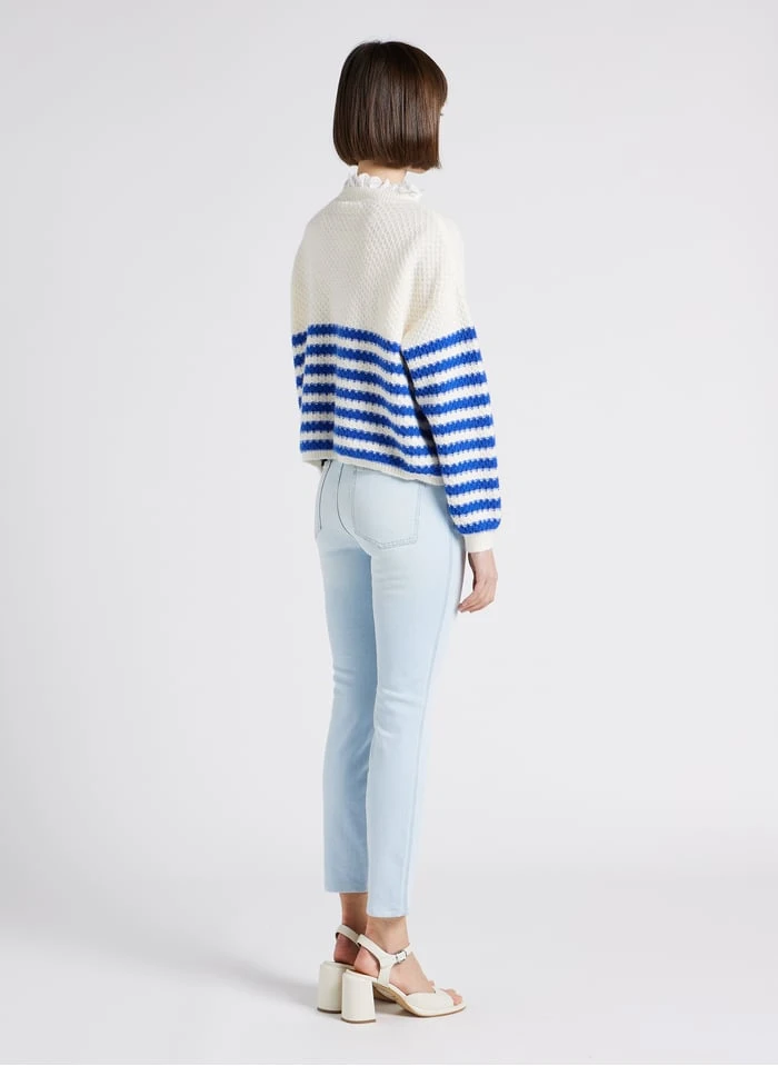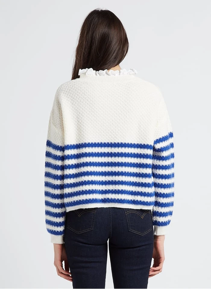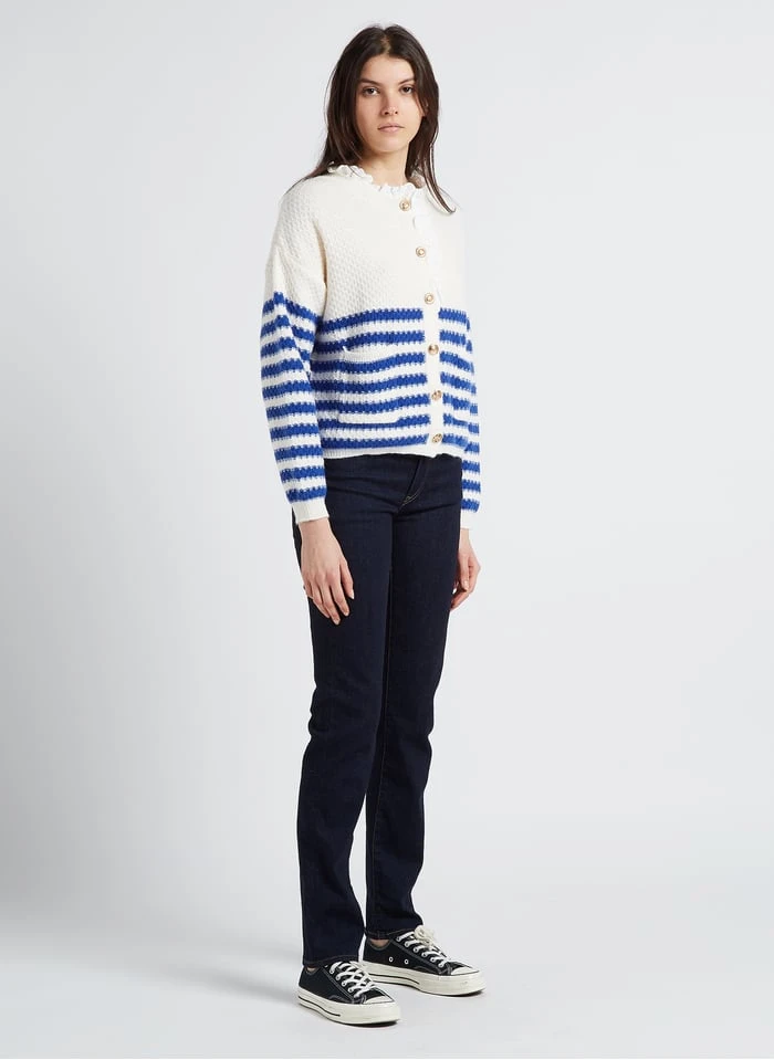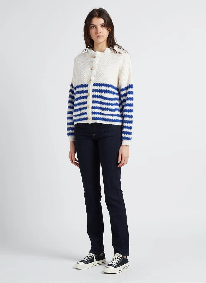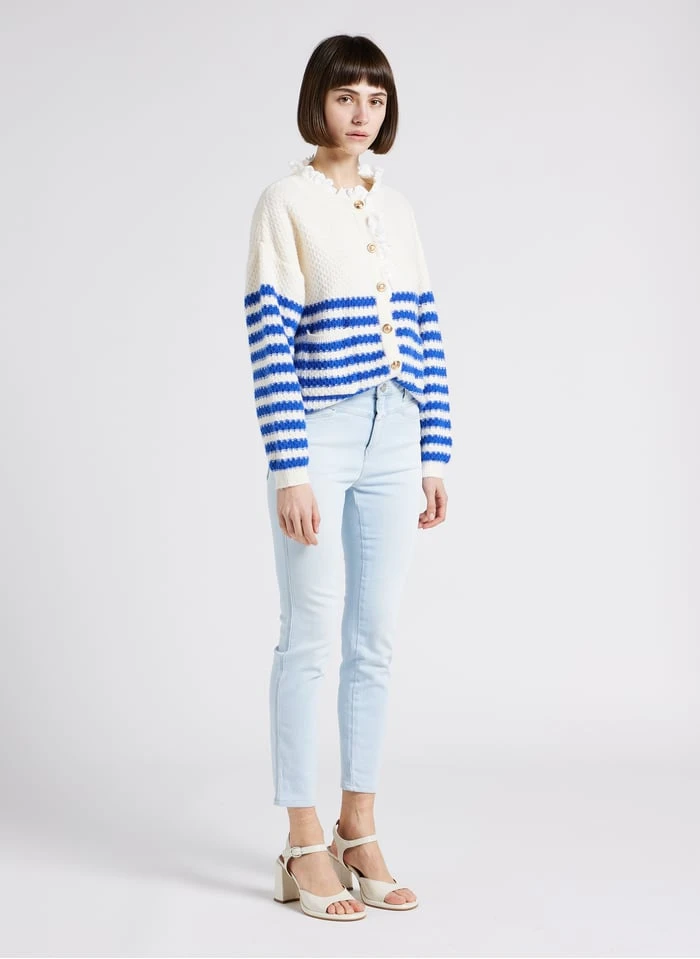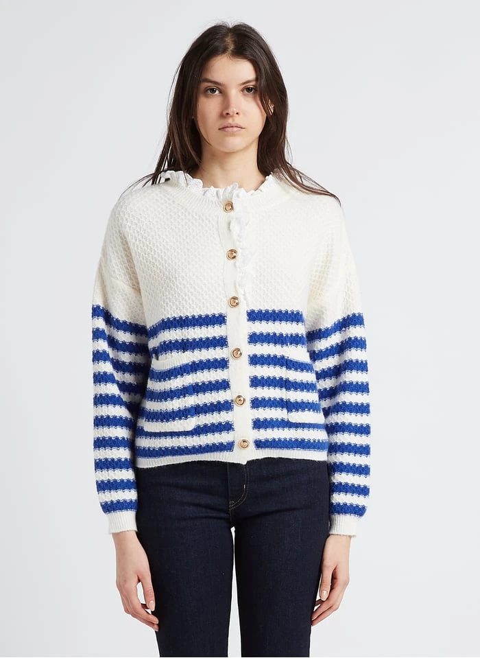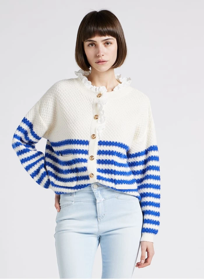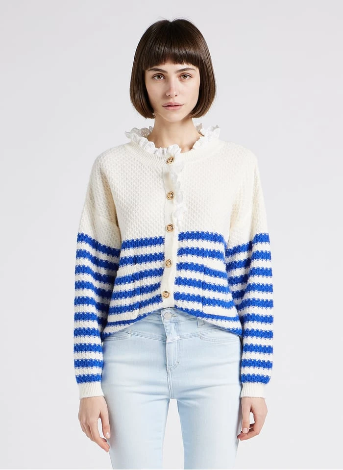Loose-fit striped cardigan with round neck by Karl Marc John for Women.