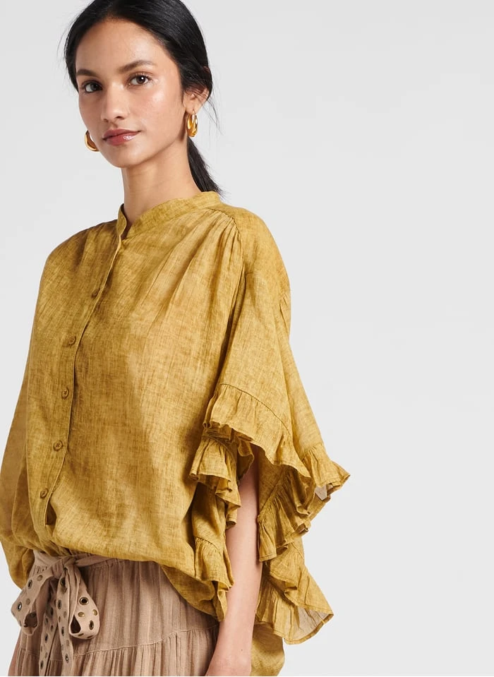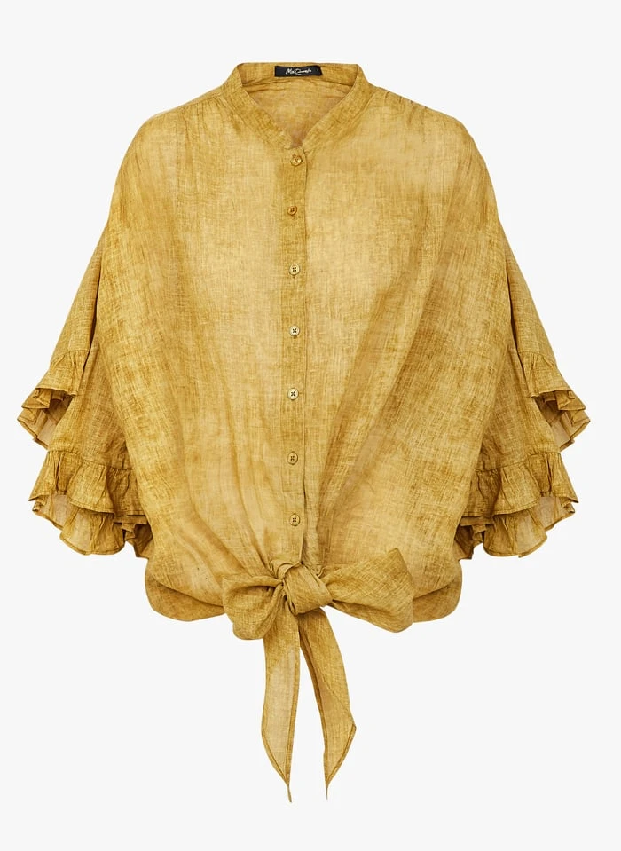 This model is shown wearing Long 100 linen skirt with cut-outs by MES DEMOISELLES