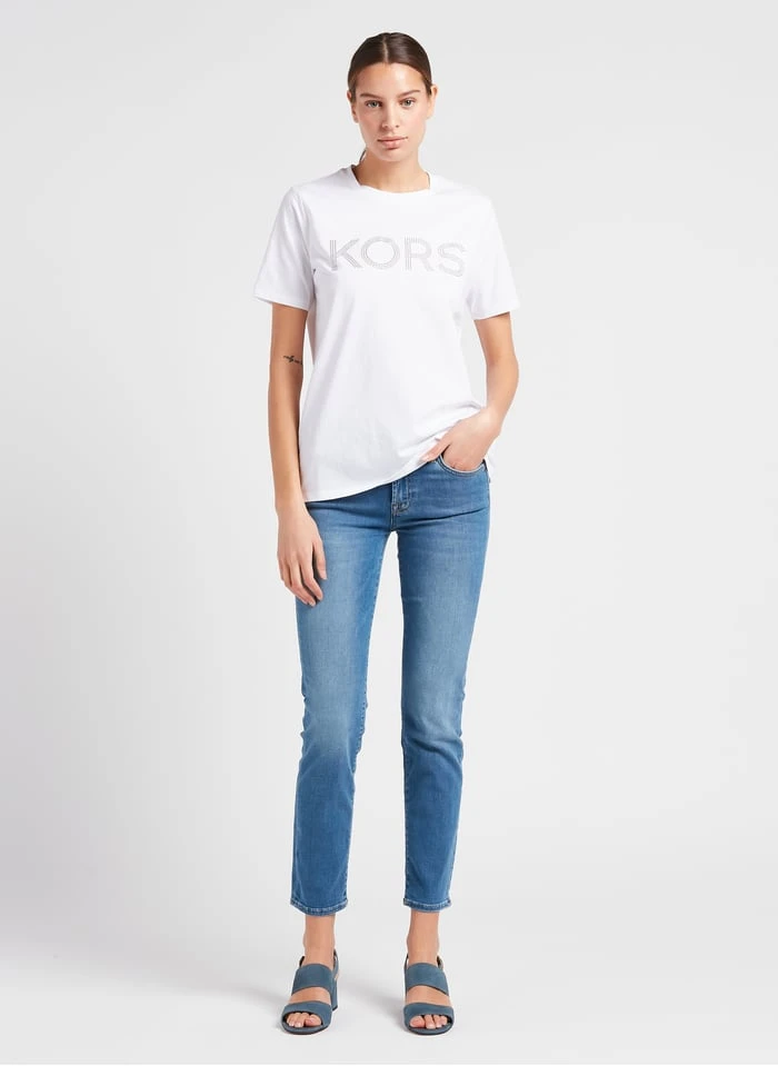Round-neck organic cotton T-shirt with logo by Michael Kors for Women.