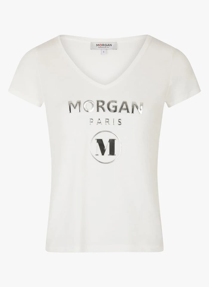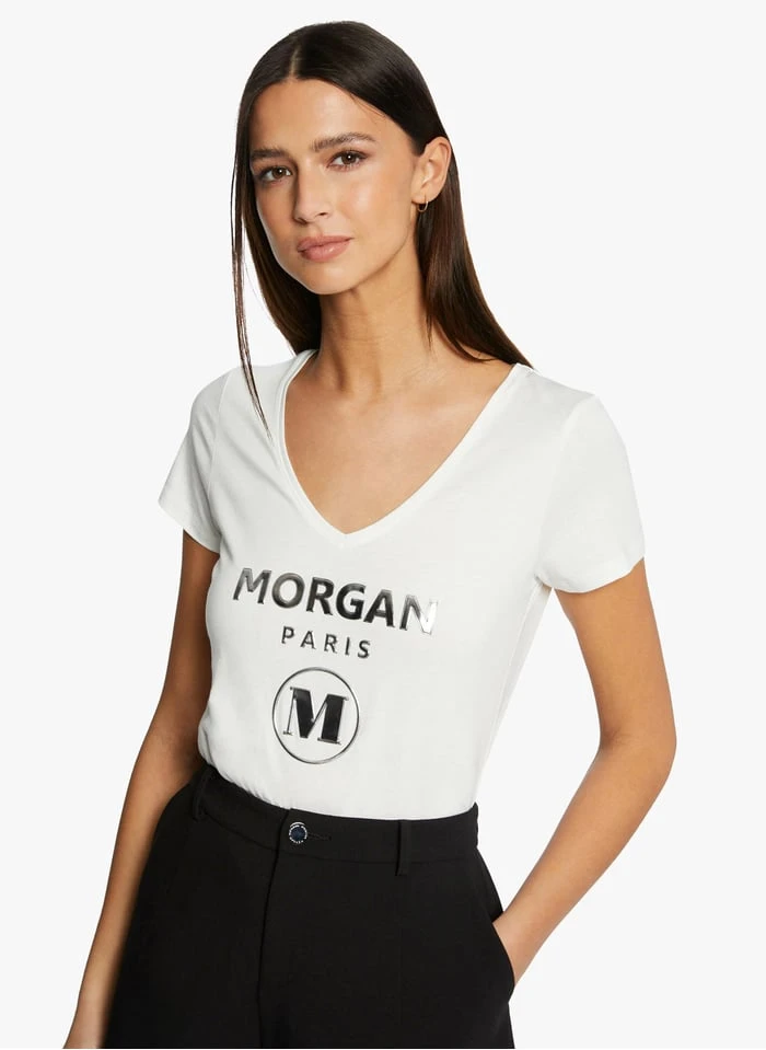 V-neck cotton-blend T-shirt by Morgan for Women.