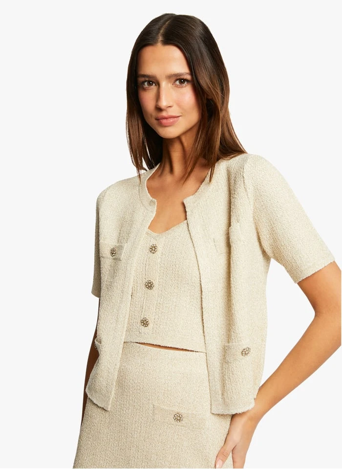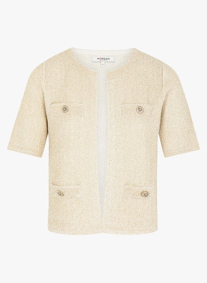 Cropped cardigan with metallic thread by Morgan for Women.