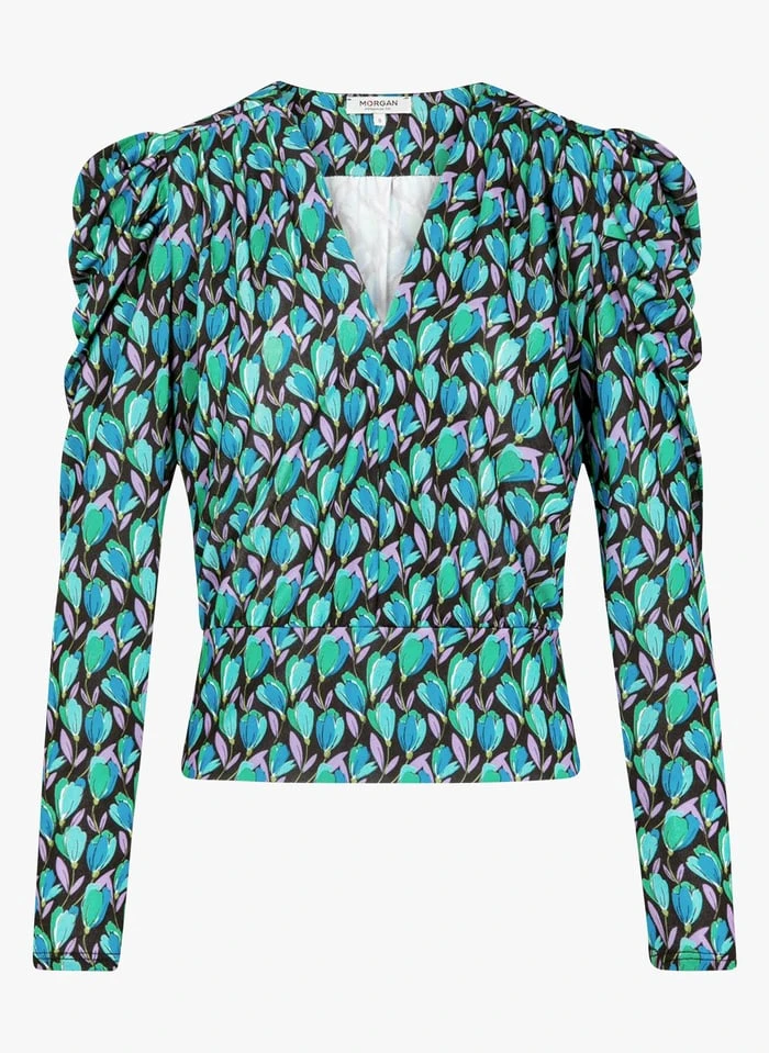Floral print V-neck T-shirt by Morgan for Women.