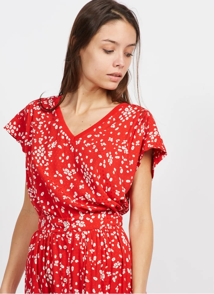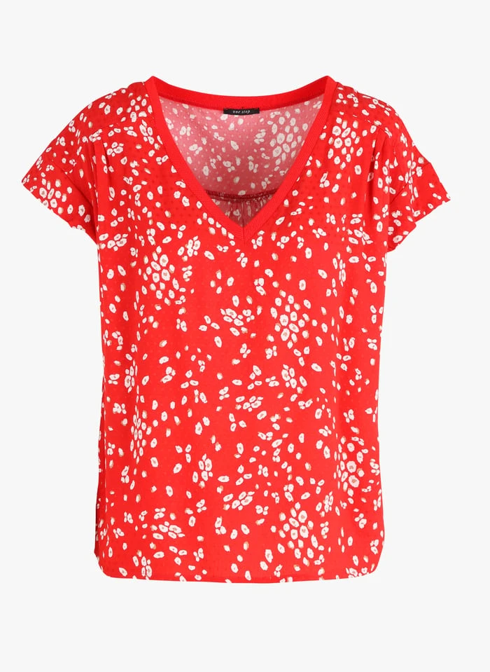 Floral print V-neck top by One Step for Women.