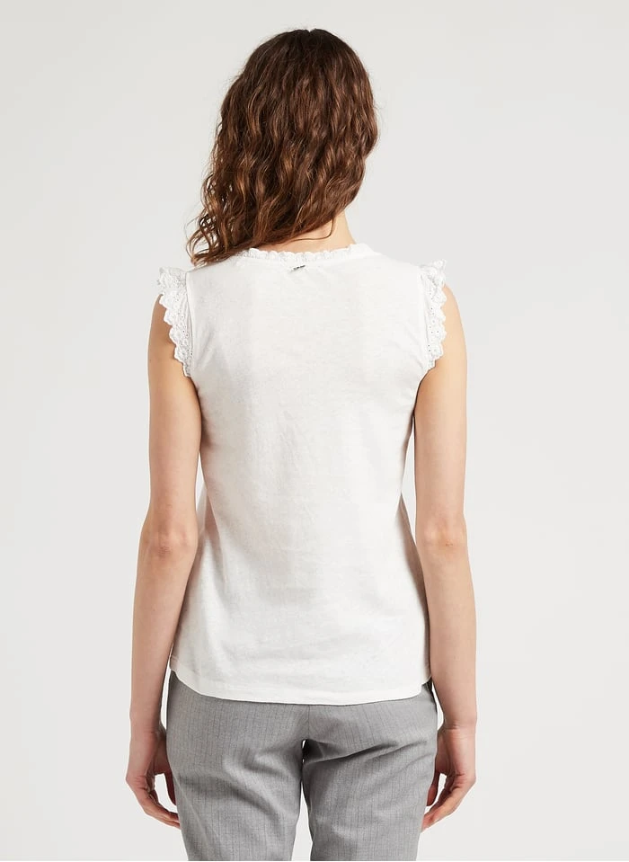 This model is shown wearing Straight striped 7/8 pants by ONE STEP, Suede loafers by JONAK