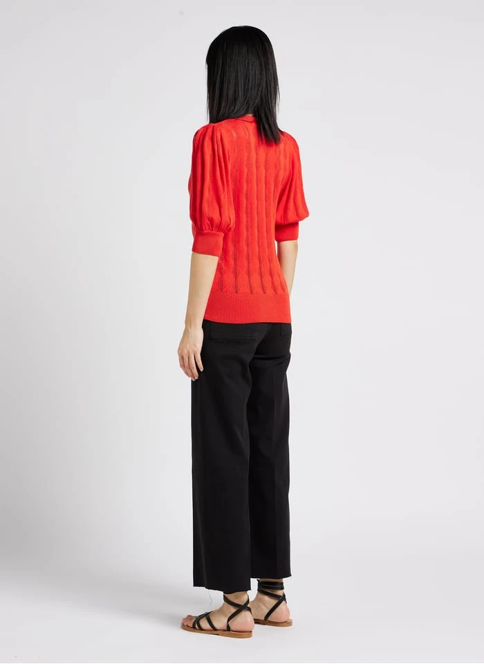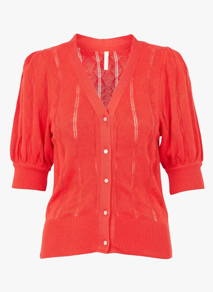 BERENICE GAMMA – Orange V-neck Cardigan With Openwork Embroidery