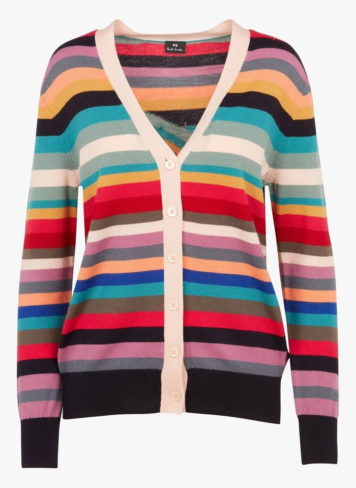 Striped wool cardigan with V-neck by Paul Smith for Women.