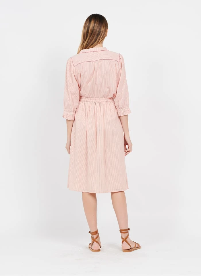 This model is shown wearing Striped cotton midi skirt by EMILE ET IDA