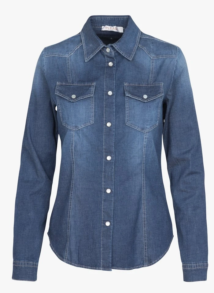 Denim shirt with classic collar by PLEASE for Women.
