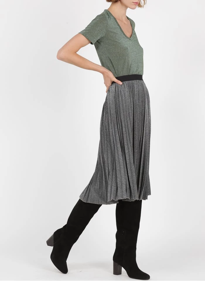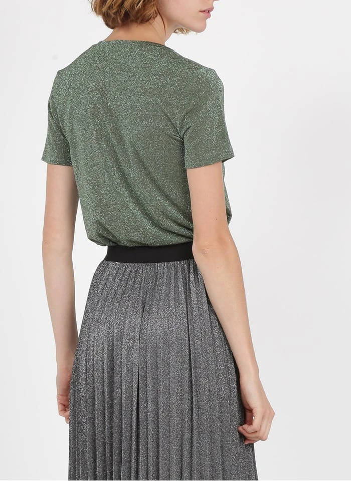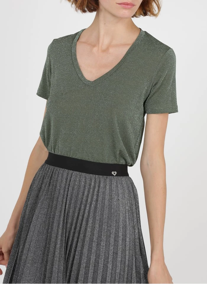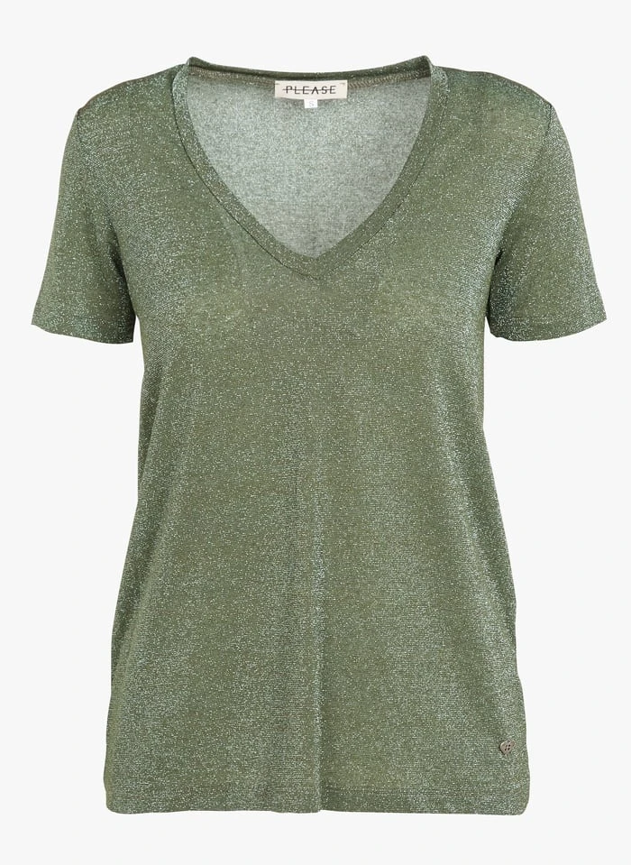 V-neck T-shirt with metallic thread by PLEASE for Women.