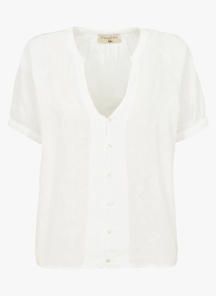 V-neck cotton-blend top by Cotelac for Women.