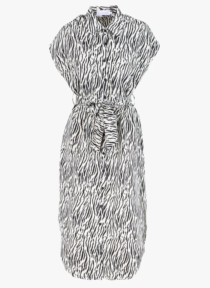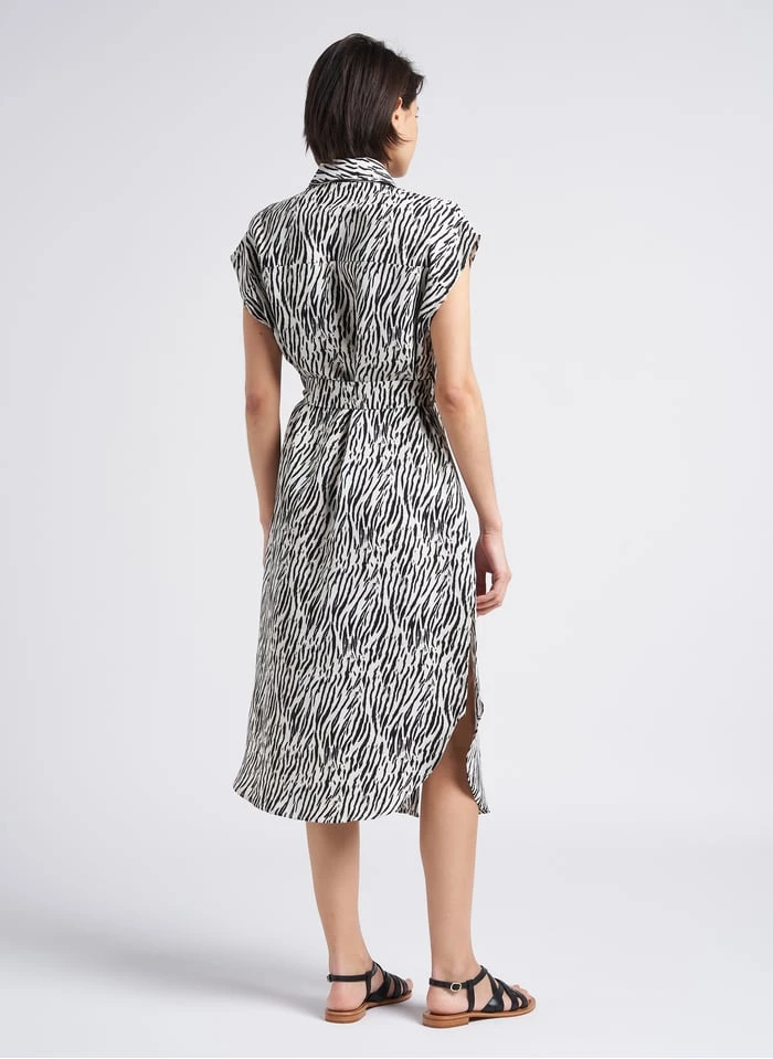 Zebra print midi dress with classic collar by Karl Marc John for Women.