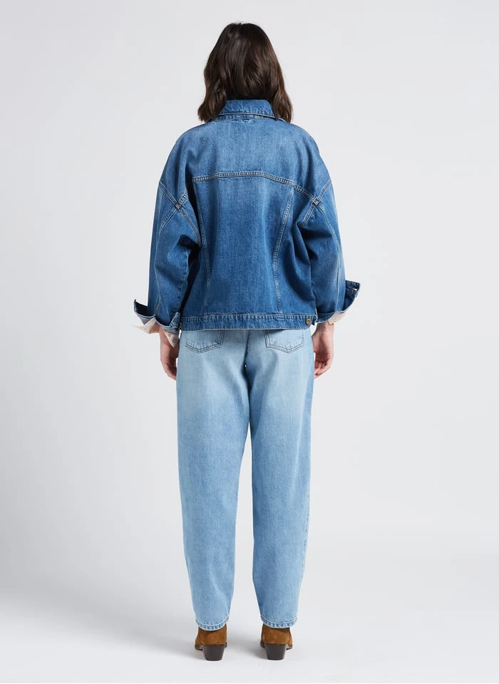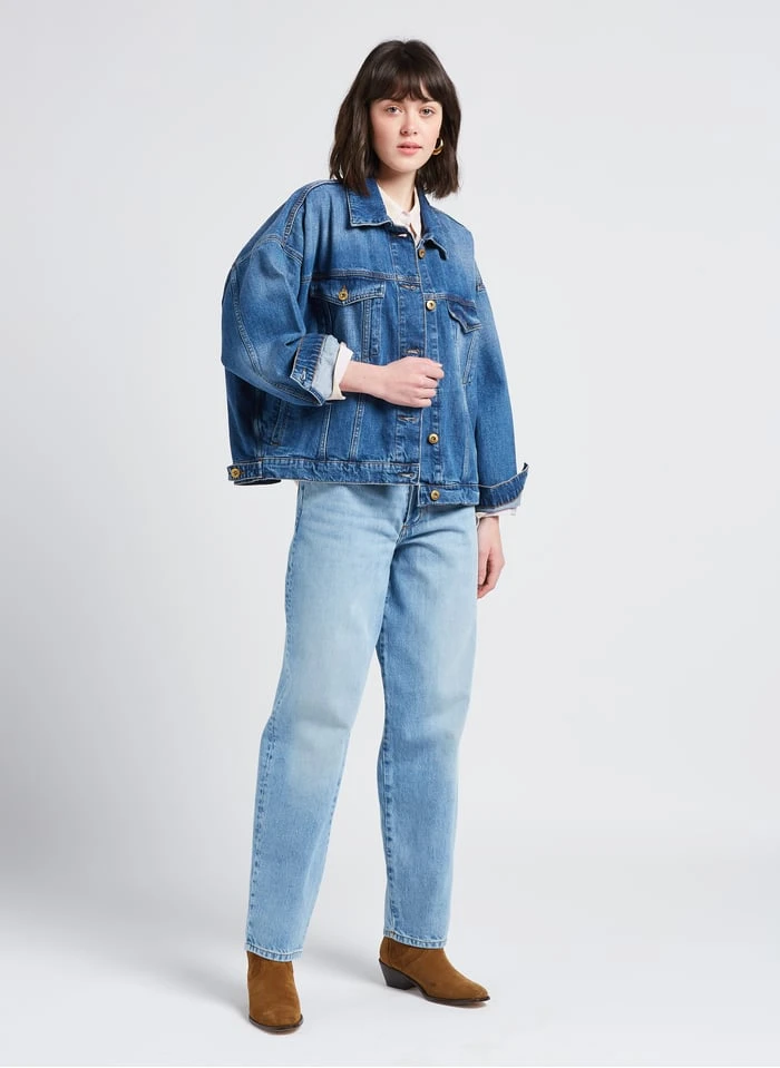 This model is shown wearing Loose-fit stonewash baggy jeans by SESSUN