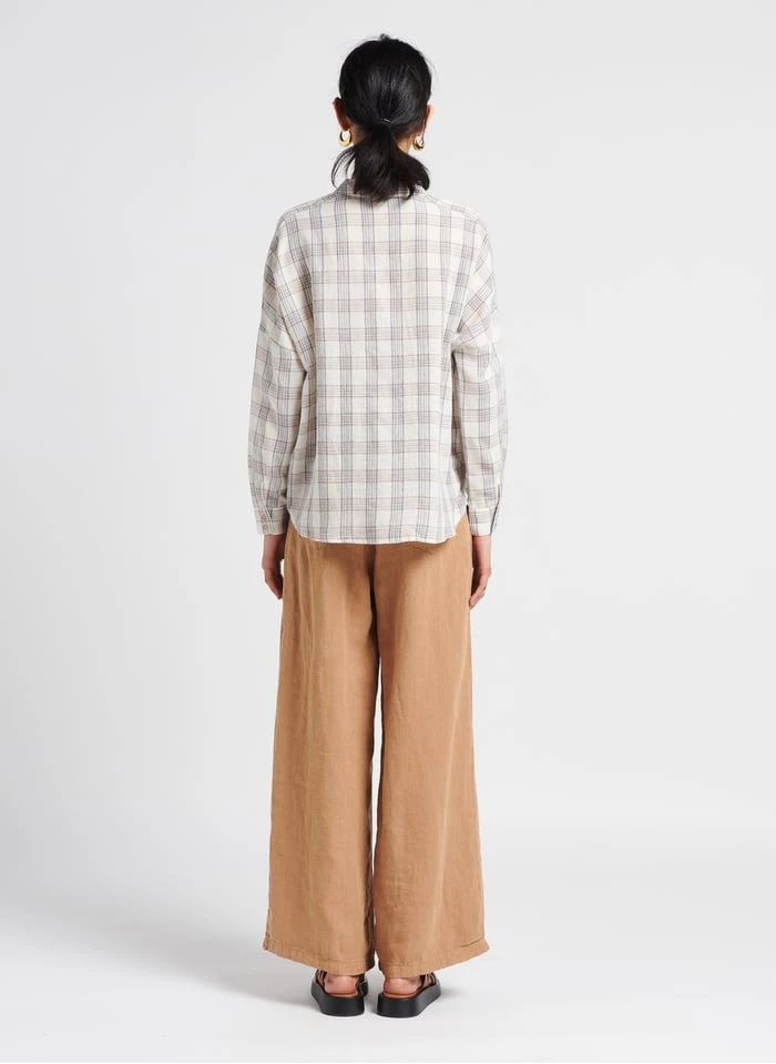 This model is shown wearing Wide-leg linen pants by MAISON HOTEL