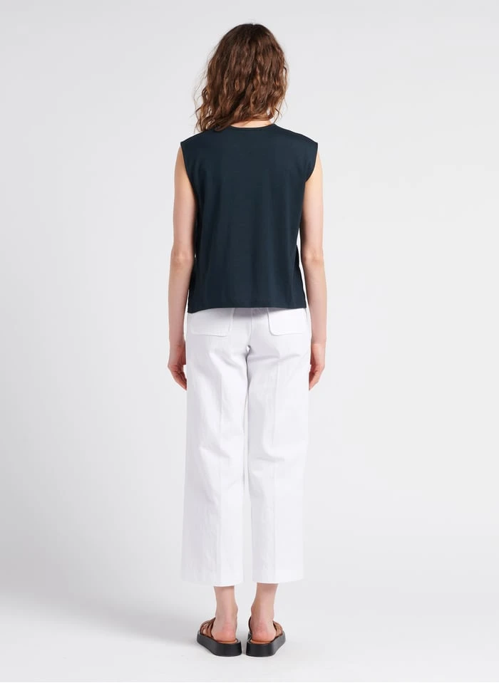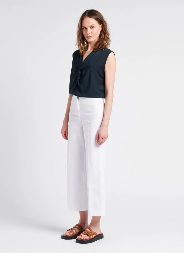 This model is shown wearing Straight gabardine pants by SESSUN