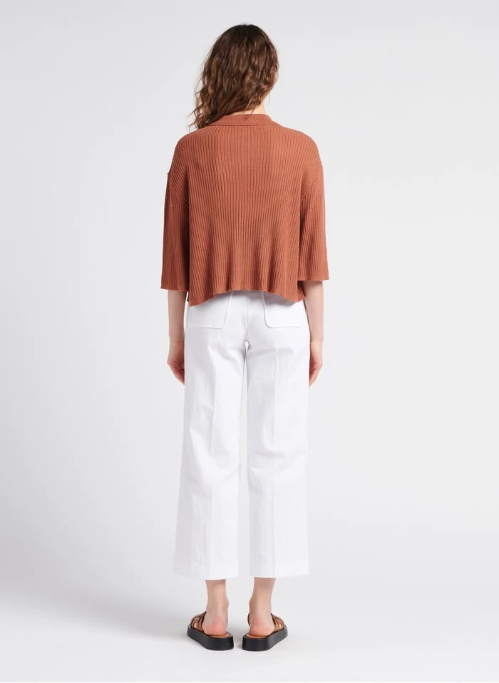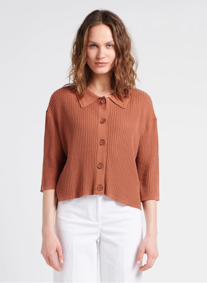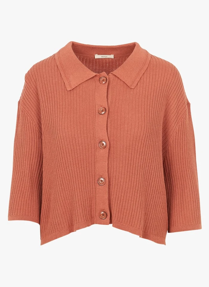 BERENICE GAMMA – Orange V-neck Cardigan With Openwork Embroidery