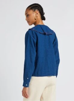Maison Labiche SOURDIERE SHELL COLLAR – Blue Loose-fit Cotton Shirt With Peter Pan Collar