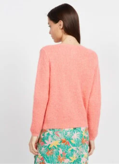 DES PETITS HAUTS BELONIE – Pink V-neck Mohair-blend Cardigan