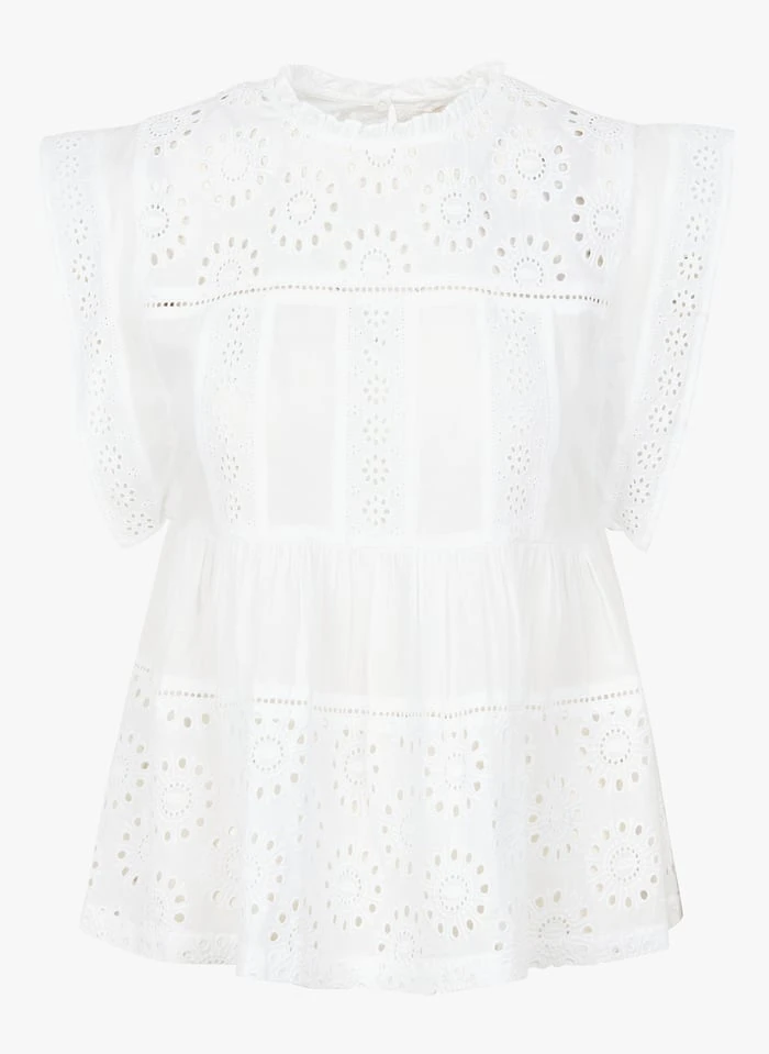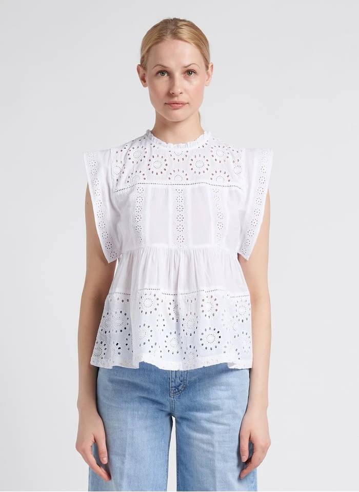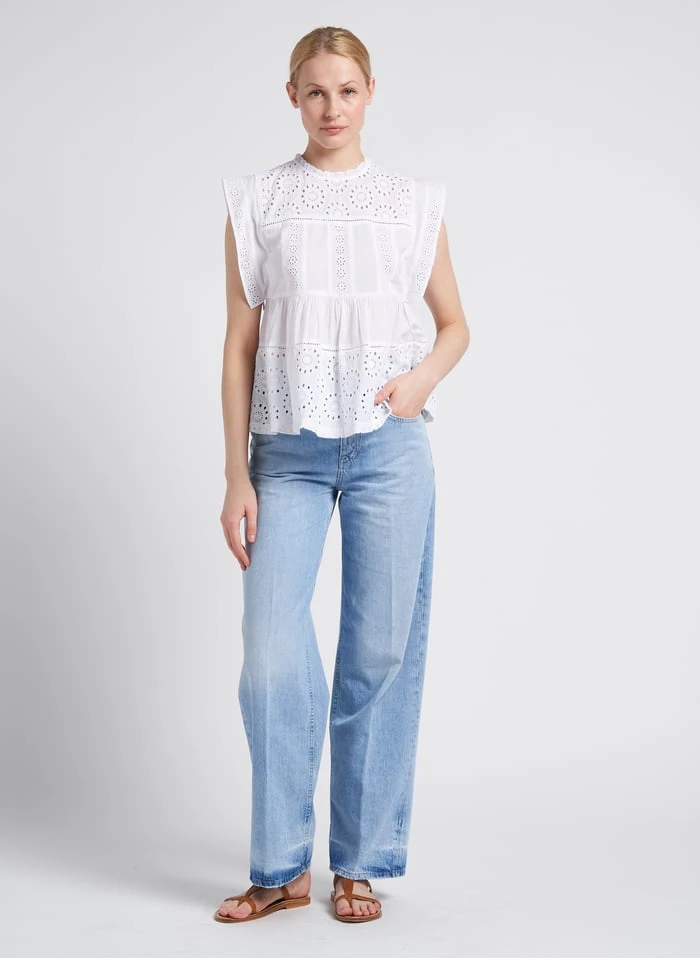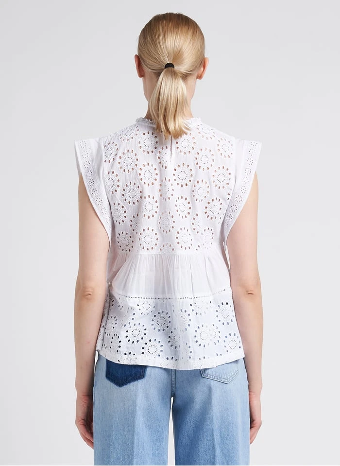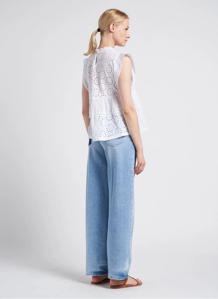 Round-neck cotton top with openwork embroidery by Stella Forest for Women.